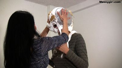 Penelope give Emma her Messygirl initiation. Emma is told to get on her knees as she is destroyed with pies, batter and custard. She also gets her ass spanked with a cat o'nine tails whip.