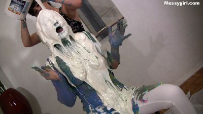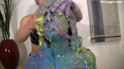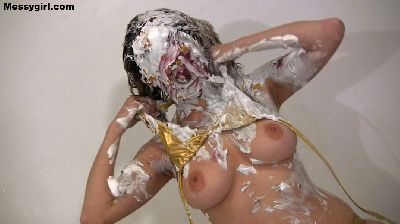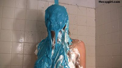Kylie is finishing washing up after her first shoot, but little did she know that we were not done with her. She has her towel pulled off and is attacked with pies, thick blue slime and dark chocolate. Once covered she decides to preform a sexy messy show for your viewing pleasure.