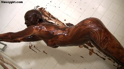 Justine is coated in head to toe in chocolate