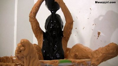 Cute Justine covers herself head to toe in 5 gallons of peanut butter and tops it off with a gallon of treacle.