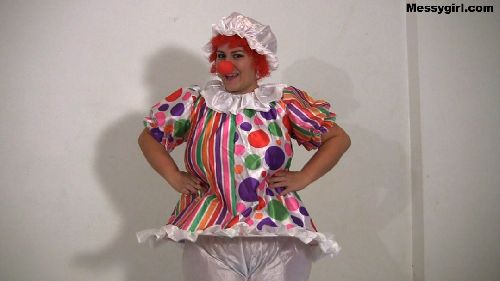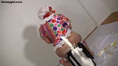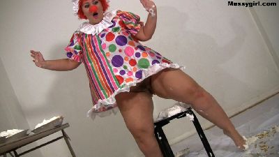 Vicky looks like a innocent clown, but soon she shows just how naughty a clown she is. She exposes herself and then self pies, slimes and sits on pies with her bare ass.