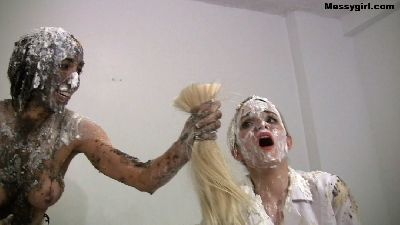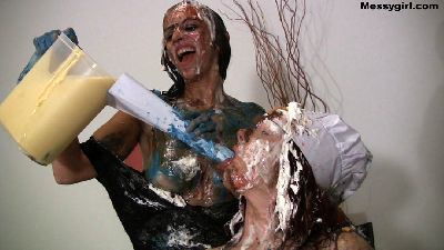 Liz and Jasmine are in a heating discussion about who looks best messy. Needless to say a messy tit for tat fight breaks out with pies and batter. The girls do make up and get very naughty in the mess. Very sexy stuff!