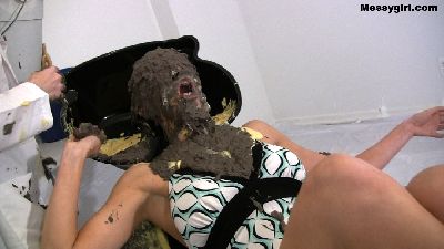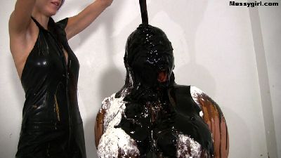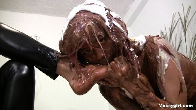 Misstress Lane has Vicky gagged and tied to a chair as she destroys her with an onslaught of treacle, chocolate, custard, flour and even more treacle.