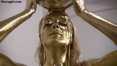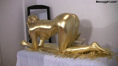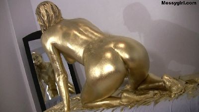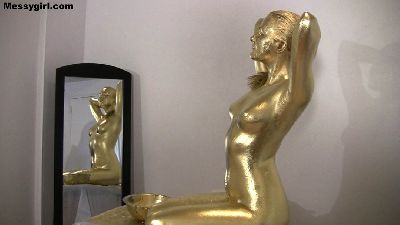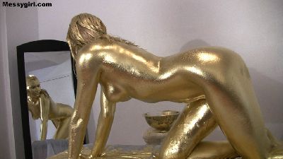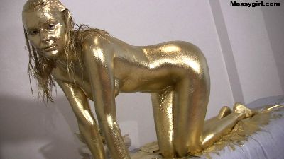 Sexy Russian Vika covers herself head to toe in gold paint. She even speaks in her native tongue, but not to worry, we added subtitles.