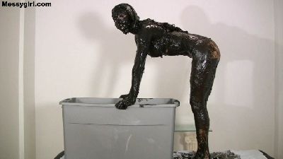Busty Vassanta covers herself head to toe in black grease and follows that with an oil pour.