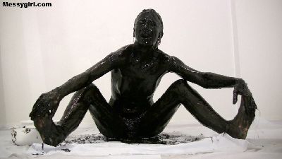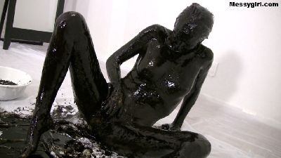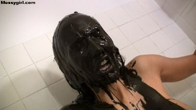 Hannah Perez is covered head to toe in grease and oil. She ends up looking like a sexy grease creature.