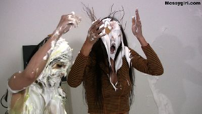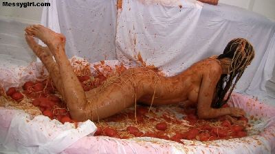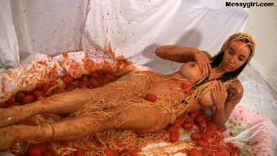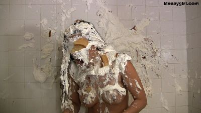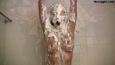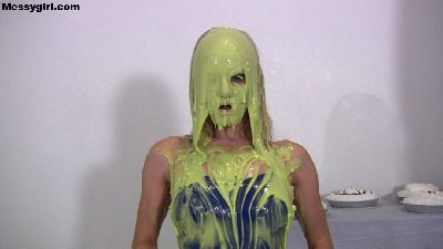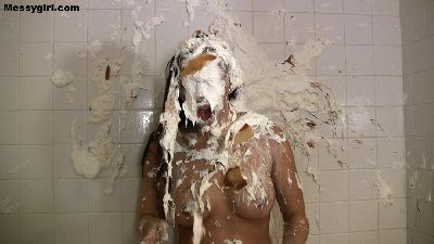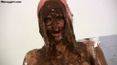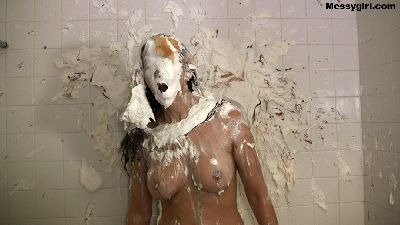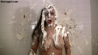 Liz gets messy and naughty in and out of her swimsuit. Total coverage with pies, slime and chocolate.