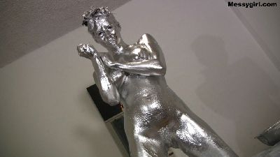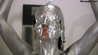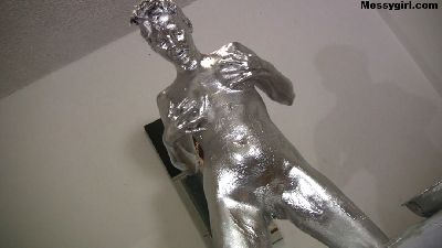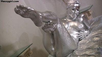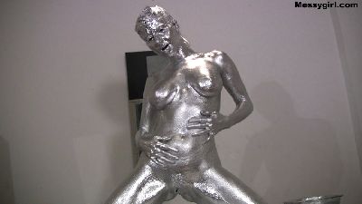 Cute and sexy Hannah Perez covers every inch of her body with silver paint.