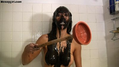 Lane had a water fall shower head installed. While taking a shower, the water stops and Lane uses a plunger to unstop it. When she thinks the water is about to flow again, she is greeted with a deluge of black sludge.