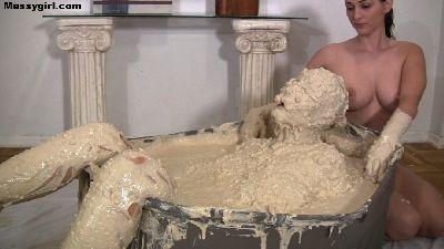 Christina and very busty Russian Vassanta take a dip in the glop bath.