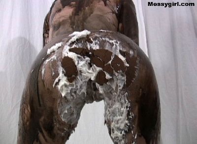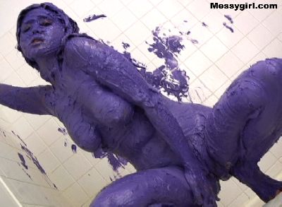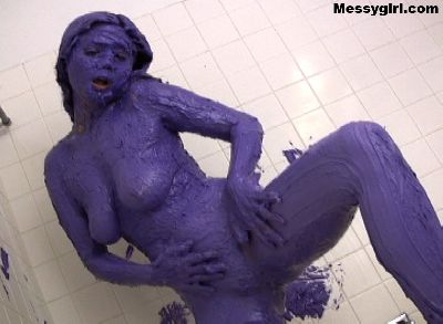 Sexy Vivian covers herself head to toe in purple butter cream. She then showers it off.