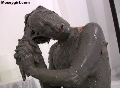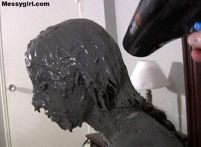Lane is in bed as she covers herself head to toe in sticky clay. She then takes a hair dryer and uses it to harden the clay on her body.
