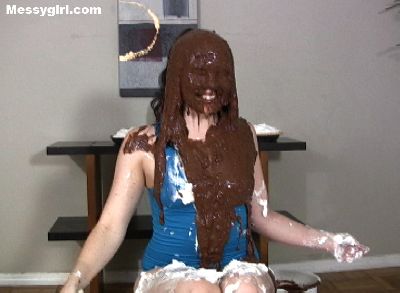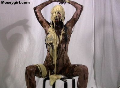 Liz covers herself head to toe in peanut butter and chocolate. Very hot stuff!