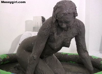 Cute Debbie is transformed from a classy girl wearing a black evening dress and heels to a naughty nude mud girl.
