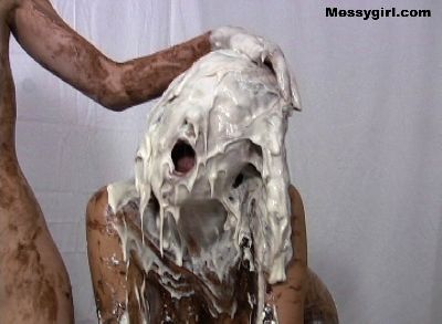 Liz and Danielle team up for some messy play time. Total messy coverage for both girls clothed to nude.