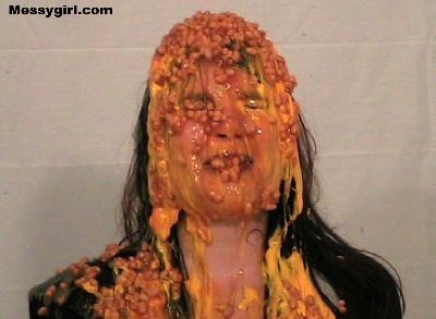 If you are a fan of messy food humiliation, then you will love this video! Poor Linda is covered in applesauce, syrup, cheese sauce, beans, raw eggs, pudding, pies and melted ice cream. She even dunks her head in a bucket of green slop!