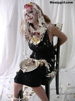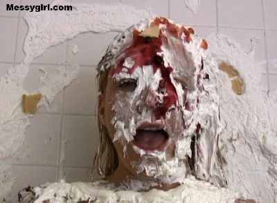 Messygirl virgin Laurel gets 14 pies hard to the face and takes them like a trooper. She then rubs the messy all over herself.