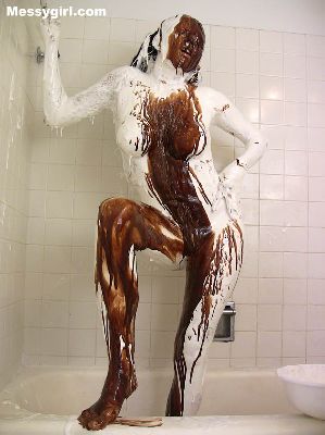 Sexy Jasmine covers herself head to toe in sticky marshmallow cream and tops it off with chocolate syrup!