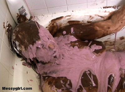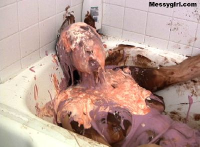 In this video you get to know what it would be like to give Kim the messygirl treatment. She is taking a bubble bath and then is attacked with pies, slime and melted ice cream. She is stunned at first, but gives in and says the magic words `Let me have it!`.