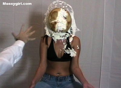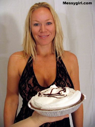 Busty and sexy Tribeca does her first every messy shoot. She didn't know what she was in for, but after the pies creamed her face she loved it!