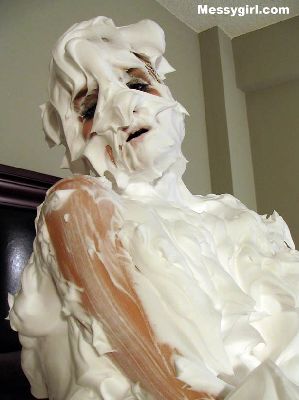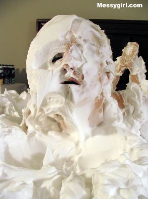 Liz is covered in shaving cream