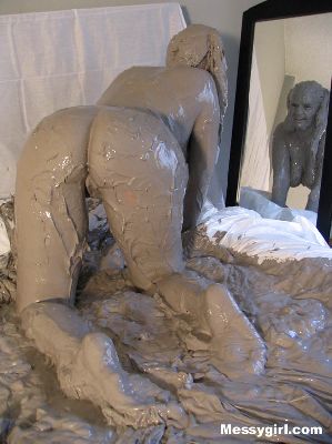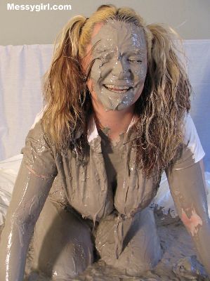 Kordelia is dressed as a school girl that gets into a bed full of thick mud. She ends up nude and covered head to toe!