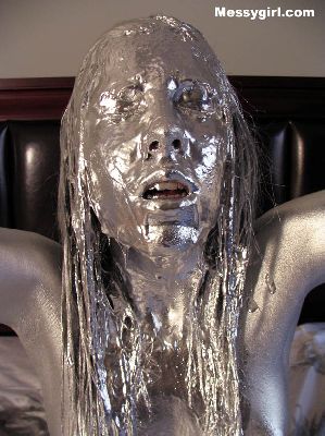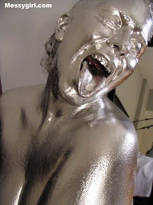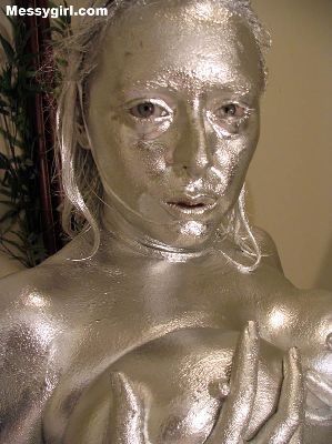 Vicky is covered in silver paint