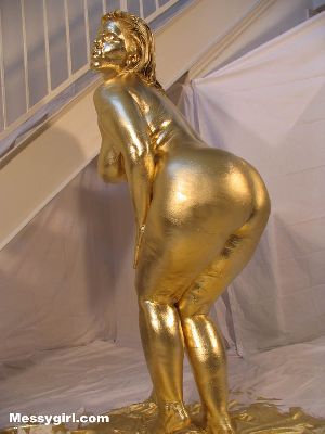 Sexy Vicky is covered head to toe in gold paint. She is nude from start to finish!