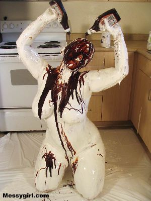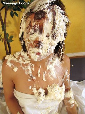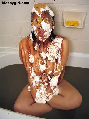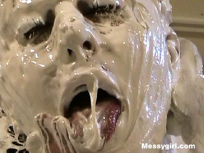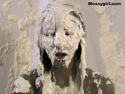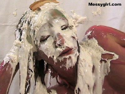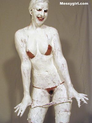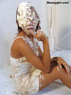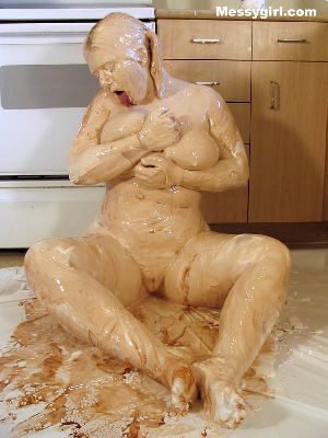 Sexy Liz makes a mess of herself wearing her matching panties and tank top. She ends up nude and covered head to toe in pies, batter and chocolate syrup!