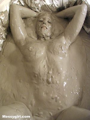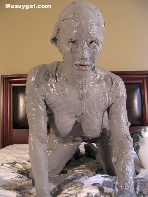 Sexy 45 year old MILF Jade is covered head to toe in sticky clay! All nude!