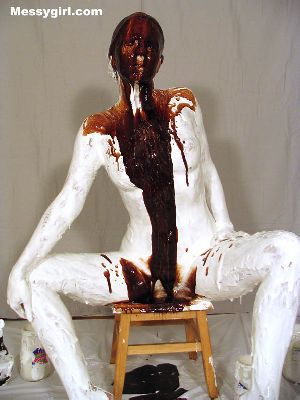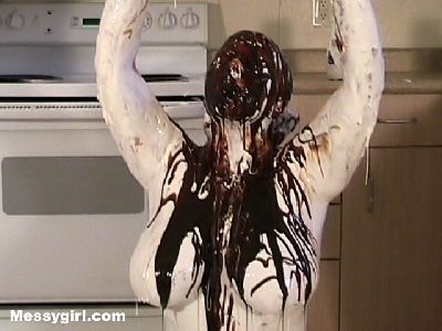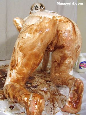 A nude Vicky covers herself in marshmallow cream and chocolate syrup.